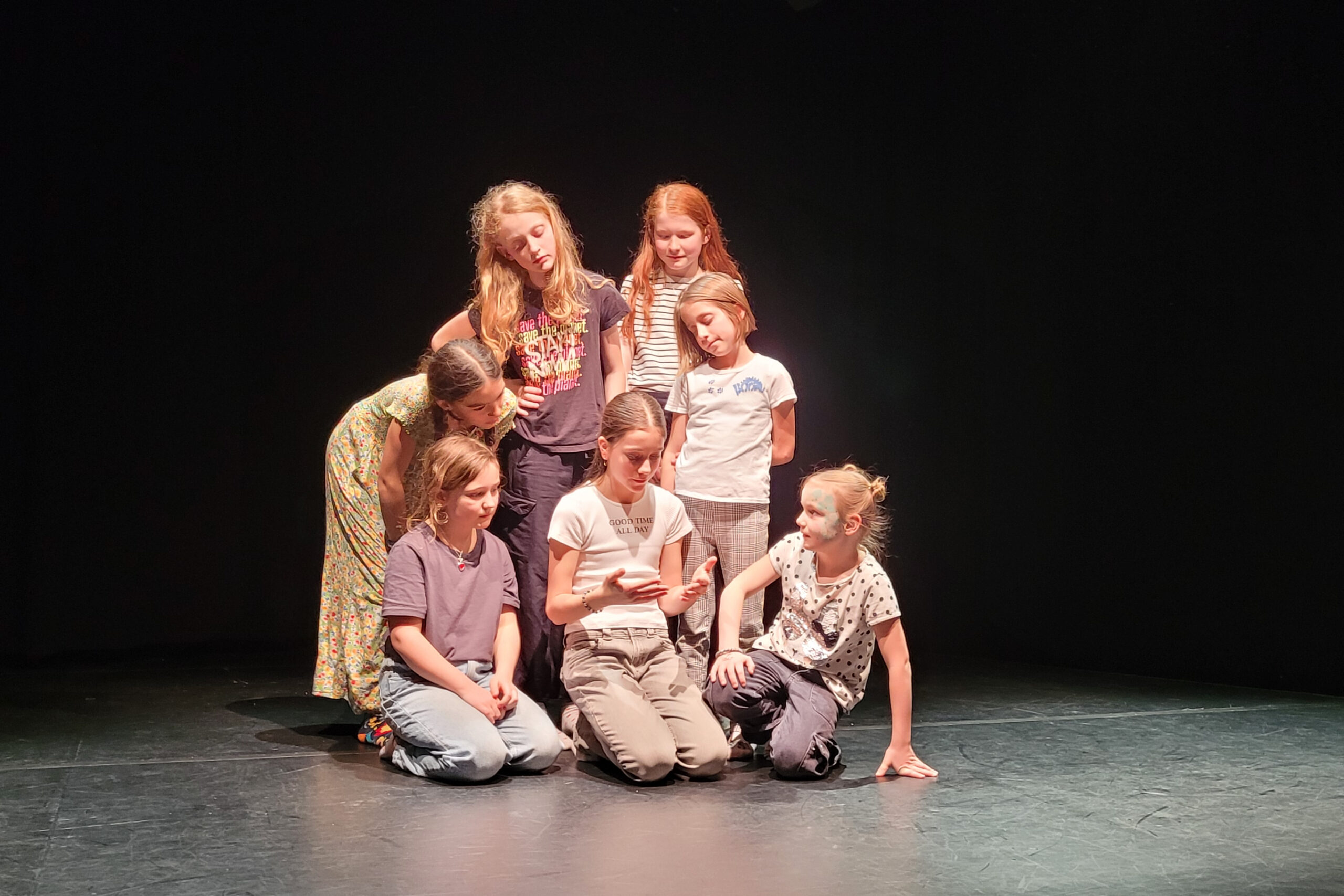 Seit den Herbstferien 2026 probt eine Gruppe von acht motivierten Nachwuchsschauspielerinnen zwischen 9 und 13 Jahren für ihr eigenes Theaterstück: Sie haben die Rollen selbst gewählt und erfunden, Texte geschrieben, Ideen gesammelt und experimentiert. Daraus ist ein magisches Abenteuer entstanden, bei welchem es um nichts weniger geht als um die Rettung der Menschheit.